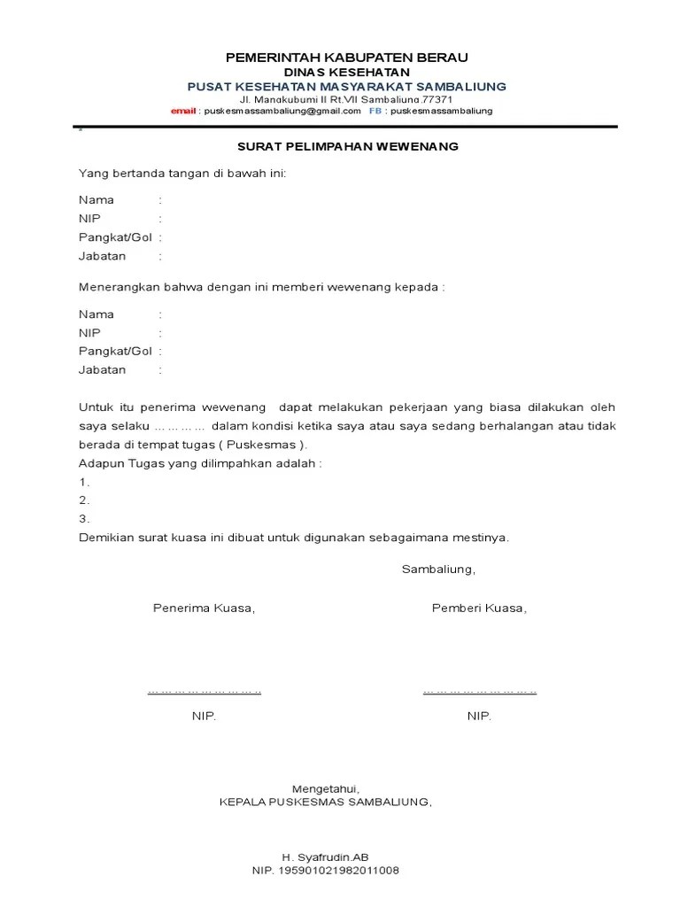 (ist) contoh surat kuasa kedinasan dari perusahaan (rocketmanajemencom) contoh surat pelimpahan wewenang. Surat kuasa berikutnya adalah pelimpahan wewenang yang bisa anda lakukan ketika tidak dapat melaksanakan suatu tanggung jawab dan harus .